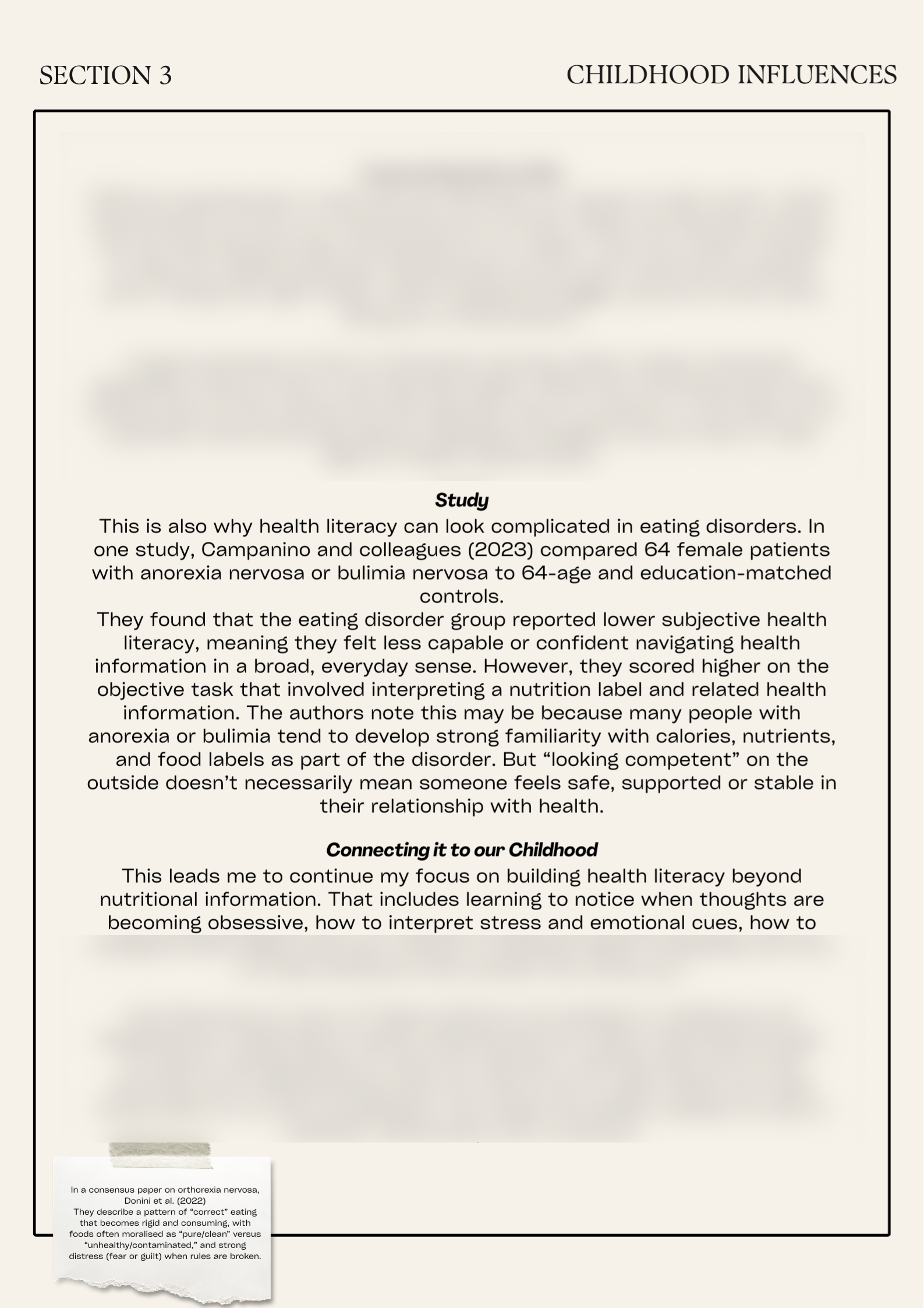 You’ll explore the mind–body disconnect often experienced by people with eating disorders. This section brings all the tools and mindsets together, emphasizing the importance of reconnecting with your body.